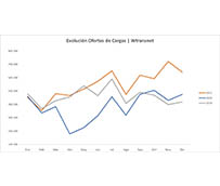 La recuperación del transporte de mercancías por carretera es un hecho. Una afirmación avalada por los datos del indicador de transporte del año 2021 realizado por Wtransnet, la bolsa de cargas líder en la Península Ibérica, del que se desprende una sobresaliente evolución del volumen de ofertas de cargas, muy superior al del año pasado e incluso por encima del registrado en 2019, antes de la irrupción de la pandemia por coronavirus.