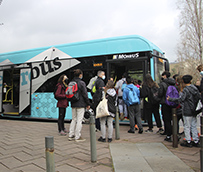 Aerobús participa en tres sesiones con alumnos de la ESO de escuelas de Barcelona. Los alumnos de 2º de la ESO de los Salesians Badalona fueron los primeros en colaborar en la iniciativa haciendo un recorrido en un autobús 100% eléctrico del servicio de Aerobús, viajando desde el mirador de Torre Baró hasta el Puerto de Barcelona.