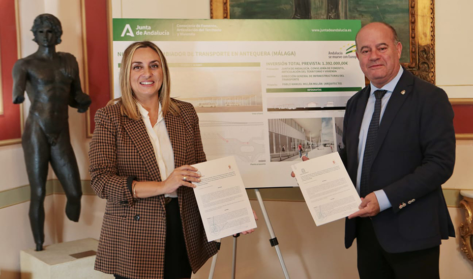 El protocolo de colaboración expresa la clara voluntad de la Consejería de Fomento y del Ayuntamiento de Antequera de contar con un nuevo intercambiador de autobuses de Antequera y tendrá como resultado de inicio la elaboración de un estudio pormenorizado que garantice la viabilidad de su construcción. Marifrán Carazo ha recordado el compromiso del Gobierno andaluz con Antequera que va «mucho más allá de la firma de este procotolo». Al respecto, ha incidido en las obras de mejora de los accesos a Antequera por la carretera de circunvalación (A-7282) o la ejecución de la primera fase de las obras de urbanización del Puerto Seco, que ha contado con una inversión de 34,7 millones y que finalizará a mediados de 2023.