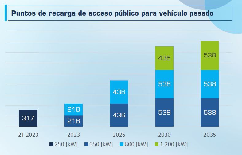 3.- Infraestructura de recarga.- Sería recomendable crear un Centro Estatal para el despliegue de infraestructuras y que haya una hoja de ruta vinculante, especialmente para los puntos que permitan cargar por encima de los 300 kW (sólo 317 de 22.000, actualmente).