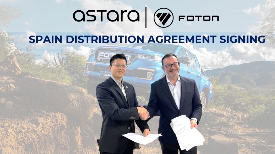 Astara, empresa líder en movilidad global, ha sido nombrada importador exclusivo de los vehículos comerciales ligeros de Foton Motor en España. Esta colaboración marca un hito en la relación entre ambas empresas y fortalece la presencia de Astara en el mercado español con una amplia oferta de vehículos. «Estamos emocionados por esta asociación con Foton Motor, líder del mercado de vehículos comerciales en China», dijo el CEO de Astara. «Este acuerdo nos permitirá ofrecer a nuestros clientes españoles una gama aún más diversa y competitiva de vehículos comerciales ligeros».