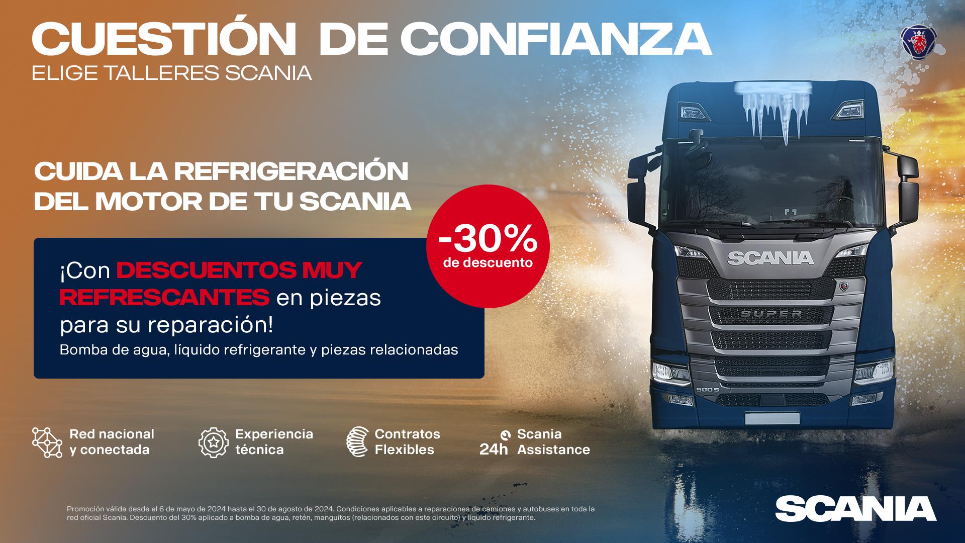 Enmarcada en el plan general de servicios «Cuestión de confianza, elige talleres Scania», esta nueva campaña tiene como punto de mira la bomba de agua, los manguitos y otros elementos del sistema de refrigeración de un vehículo.