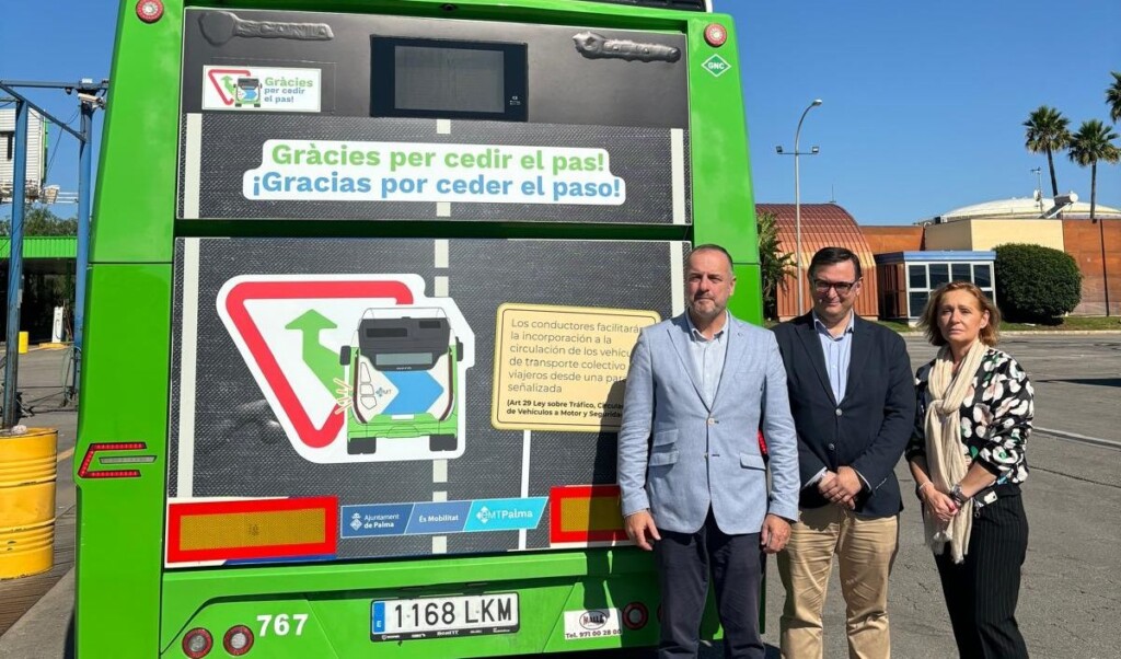 Durante los próximos meses, la publicidad trasera de uno de los autobuses de la EMT que llevará un mensaje por Palma fue presentada por el regidor de Movilidad y Polígonos Industriales, Antonio Deudero, el gerente de la EMT Palma, Juanjo Elías, y la subdirectora Yolanda Marín. La campaña, además de publicidad en los buses, incluirá diversas acciones informativas y en redes sociales. También se colocarán adhesivos en todos los vehículos de la flota.