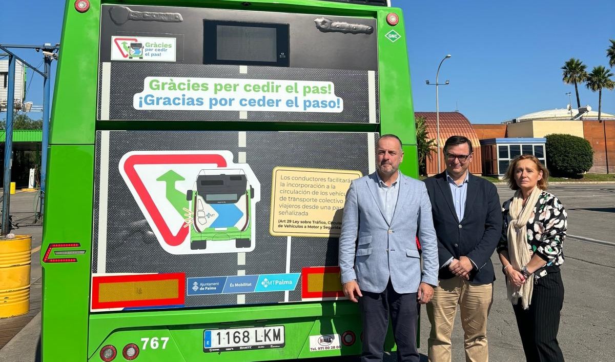 La campaña ‘Gracias por ceder el paso’, presentada por la Empresa Municipal de Transportes de Palma (EMT), busca la colaboración de los conductores de vehículos privados con el objetivo de facilitar la incorporación segura de los autobuses a la vía tras finalizar su parada.