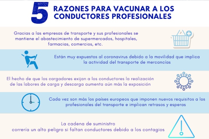 España no puede arriesgarse a que se produzcan fracturas en las cadenas de suministro si nuestros conductores se contagian, puesto que su papel es fundamental para garantizar el abastecimiento de la población y el suministro (la propia vacuna incluida).