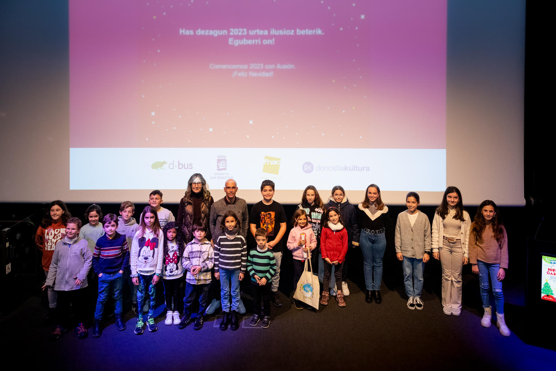 - 3º Premio: Mikel Sánchez Vega, de 8 años, de Aitor Ikastola. Tarjeta personal intransferible de uso ilimitado en los autobuses Dbus durante 3 meses del año 2023 + pack de libros y kit de escritura.