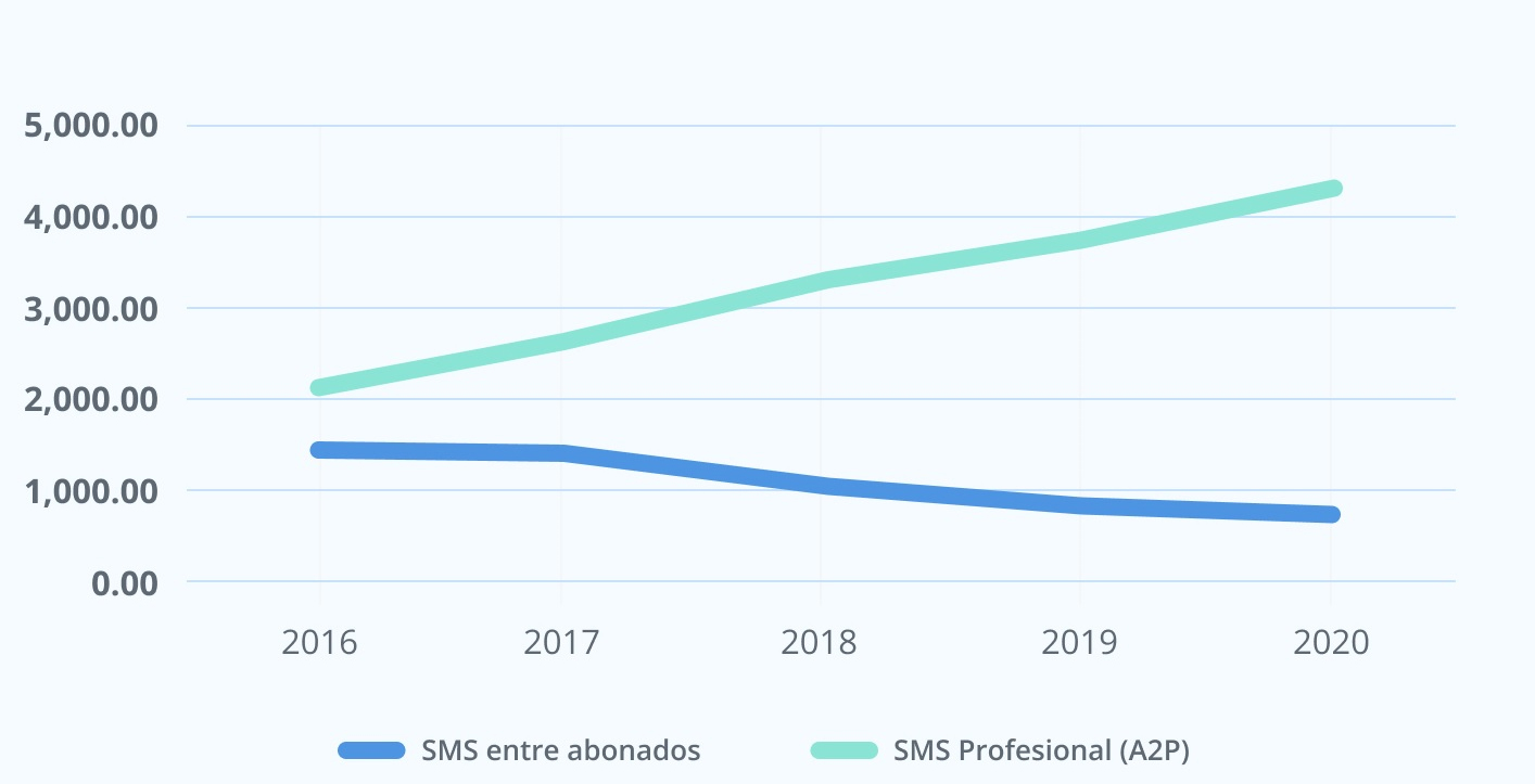 Como mencionábamos, “la cifra ha palidecido notablemente” desde entonces, dejando atrás esa comunicación interpersonal pero encontrando una alternativa que permite su supervivencia: las empresas. En este sentido, “en 2020, los mensajes profesionales, aquellos que las organizaciones mandan a los particulares, rondaron los 4.300 millones, lo que supone el 86% de los envíos de SMS que los españoles recibieron dicho año”.
