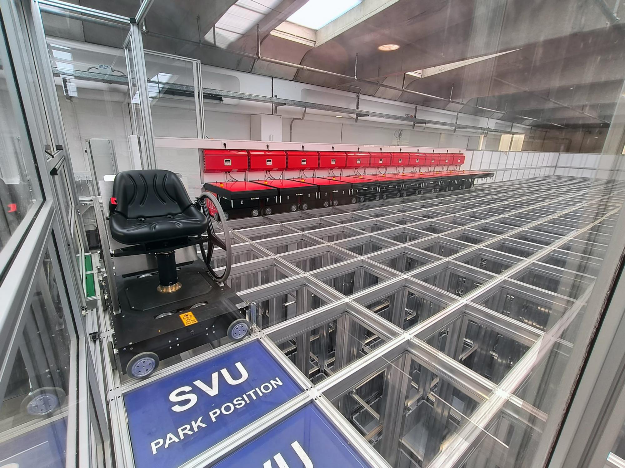 El sistema modular y automatizado goods-to-person ha sido montado en una instalación existente de aproximadamente seis metros de altura y con una superficie de 400 metros cuadrados. La altura de la rejilla es de aproximadamente 3.700 mm y tiene una capacidad de almacenamiento de 10.000 contenedores. El sistema ofrece un volumen de almacenamiento de hasta 758 metros cúbicos y una relación de 1,9 m³/m². Los 13 robots R5, junto con sus respectivos cargadores de batería y tres puertas tipo carrusel, garantizan la eficiencia en los procesos de picking y decantación.