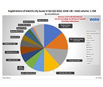 En el período enero-junio de 2022, los autobuses de cero emisiones (autobuses eléctricos de batería y de pila de combustible) tuvieron una participación del 30 por ciento en el mercado de autobuses urbanos, creciendo desde el 22,8 del año completo 2021 y el 15,1% para todo el año 2020.