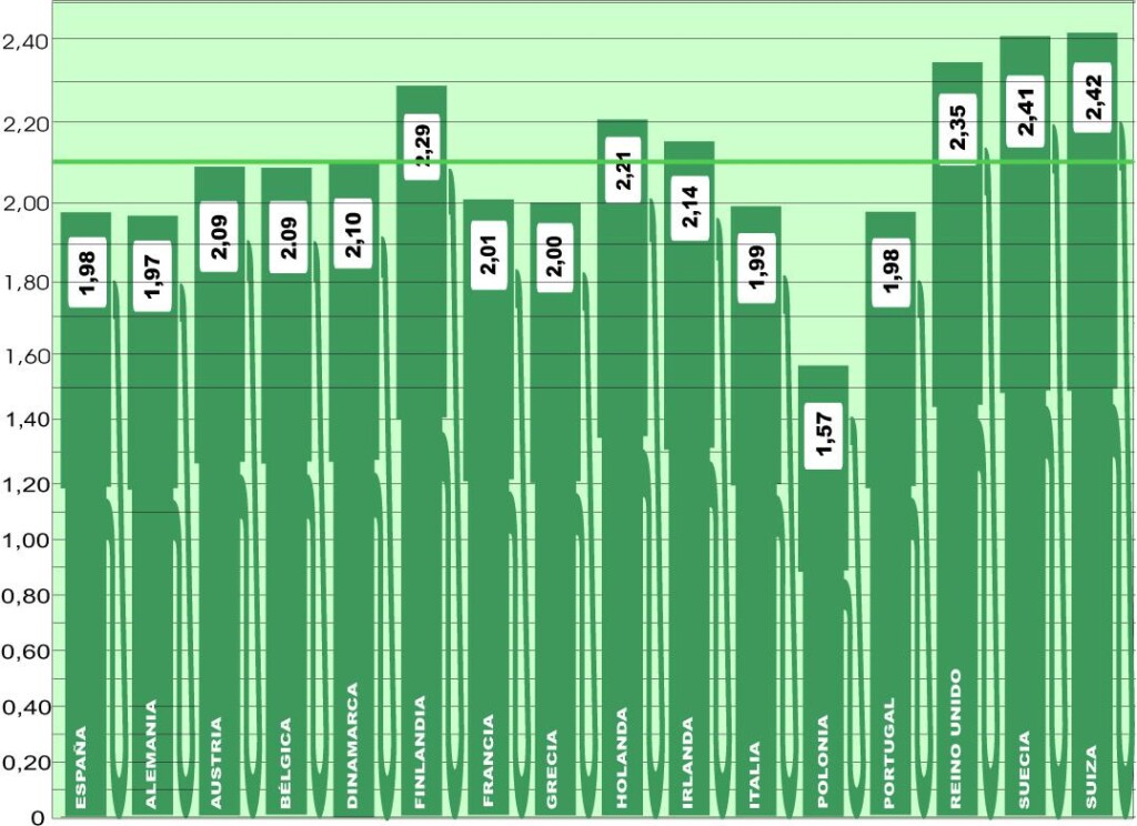 Polonia, con 1,57 euros (esta semana vio descender cinco céntimos su media), sigue siendo el país más barato para repostar, aumentando la diferencia respecto a Alemania (1,97, repitiendo) y España y Portugal (1,98), que junto a Italia (1,99) son los únicos países donde se podía repostar ayer por debajo de los dos euros/litro de media.