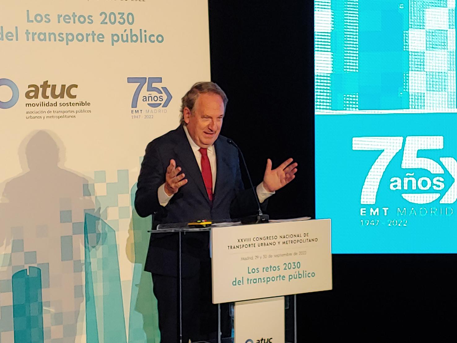 Tras la intervención del gerente de la EMT de Madrid, Alfonso Sánchez, fue el concejal de Movilidad del Ayuntamiento madrileño, Borja Carabante, quien repasó los retos a los que se enfrenta el transporte público en la ciudad, empezando por la recuperación de los niveles de demanda de 2019 (“ahora estamos en un 85-90%”), la necesidad de afrontar el déficit financiero que provoca la subida de los precios de la energía, y “la de convertirnos en palanca de movilidad. En Madrid se realizan 12 millones diarios de desplazamientos, que tienen que ser cada vez más sostenibles. Por eso, afrontamos un ambicioso proceso de transformación de la empresa municipal, aprovechando la tecnología para conocer mejor a nuestros usuarios”. Así, dio paso a unas palabras grabadas enviadas por el alcalde de la capital, José Luis Martínez-Almeida, que excusó su asistencia.