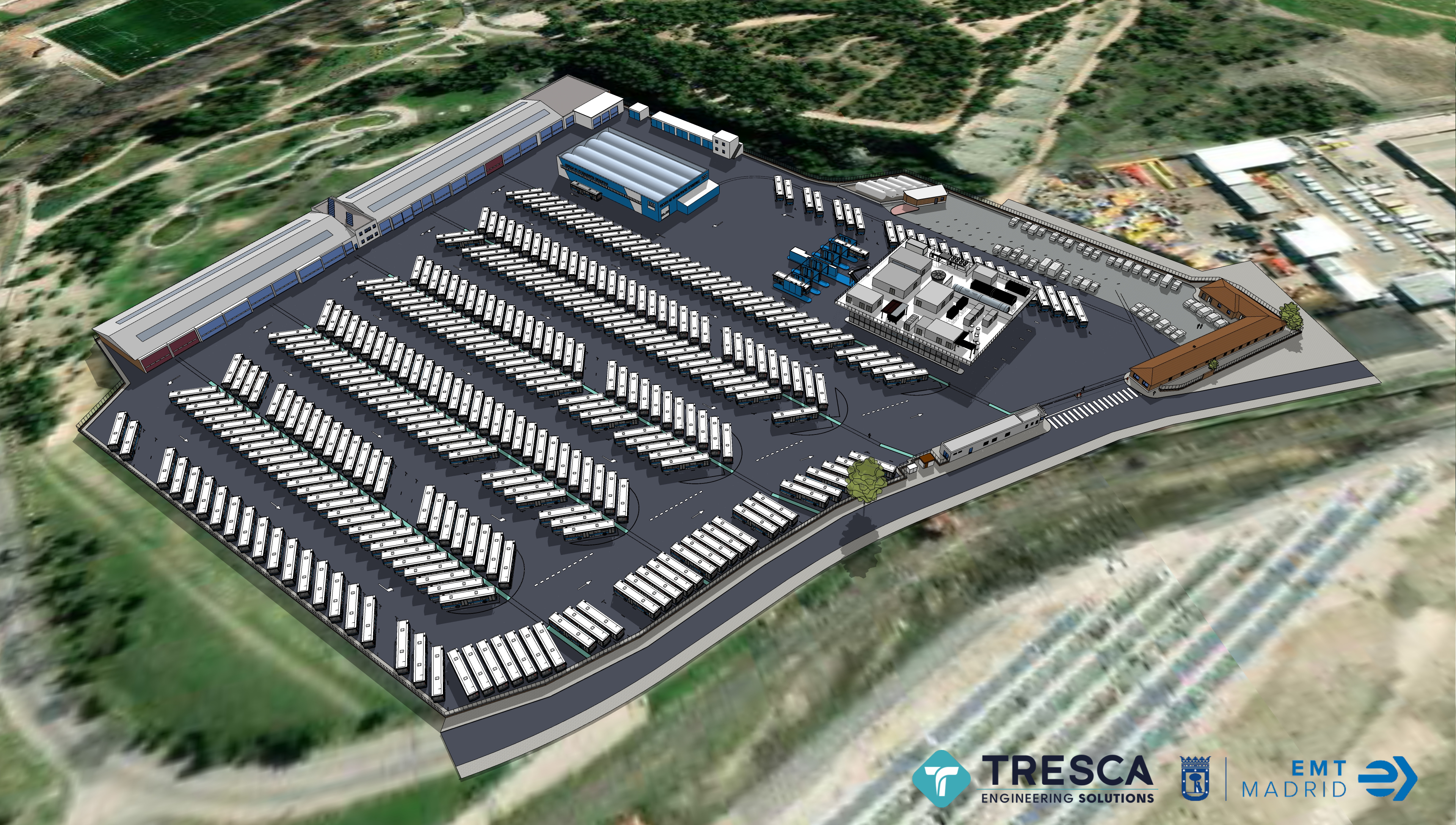 El primer proyecto de la EMT financiado con los fondos FEDER (Fondo Europeo de Desarrollo Regional) ya se está en fase de ejecución. En concreto, se trata de la construcción de la hidrogenera y la placa fotovoltaica del Centro de Operaciones de Entrevías. La instalación funcionará en la producción, almacenamiento y distribución de hidrógeno verde para una primera flota de diez autobuses cero emisiones.