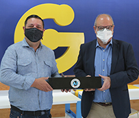 El responsable de Sanity Air, Miguel Hernández Lantigua, hizo entrega al director general de Guaguas Municipales, Miguel Ángel Rodríguez, de un aparato esterilizador de aire -diseñado para vehículos de transporte-, que cuenta con certificaciones y acreditaciones europeas de seguridad eléctrica, mecánica, inocuidad y eficacia.