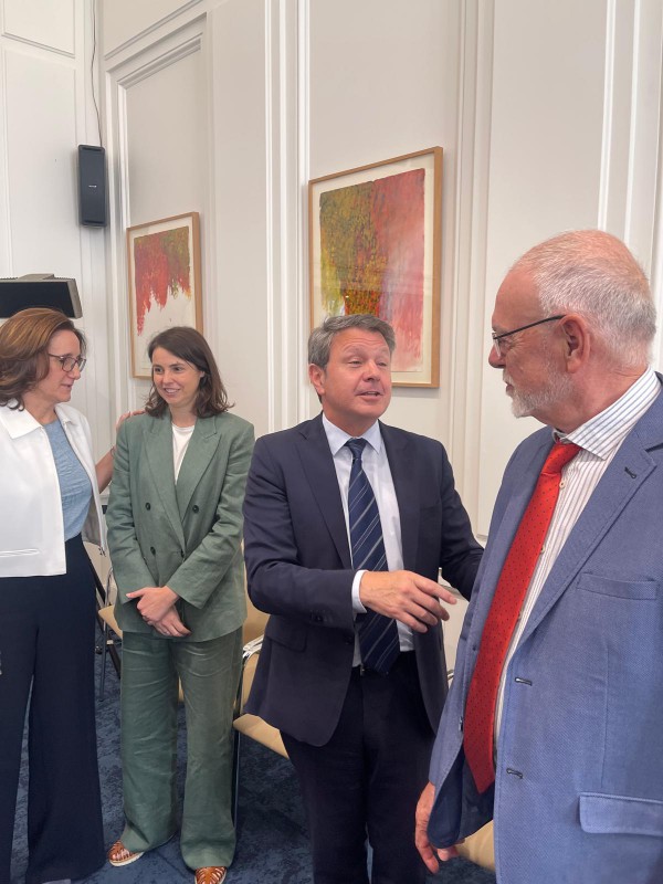 Este jueves 12 de junio, el Ministerio de Transportes celebró un emotivo homenaje a Ovidio de la Roza, expresidente de la Confederación Española de Transporte de Mercancías (Cetm), y a Julio Villaescusa, presidente de la federación nacional de asociaciones de transporte (Fenadismer), en reconocimiento a su extensa trayectoria en defensa del transporte por carretera en España.