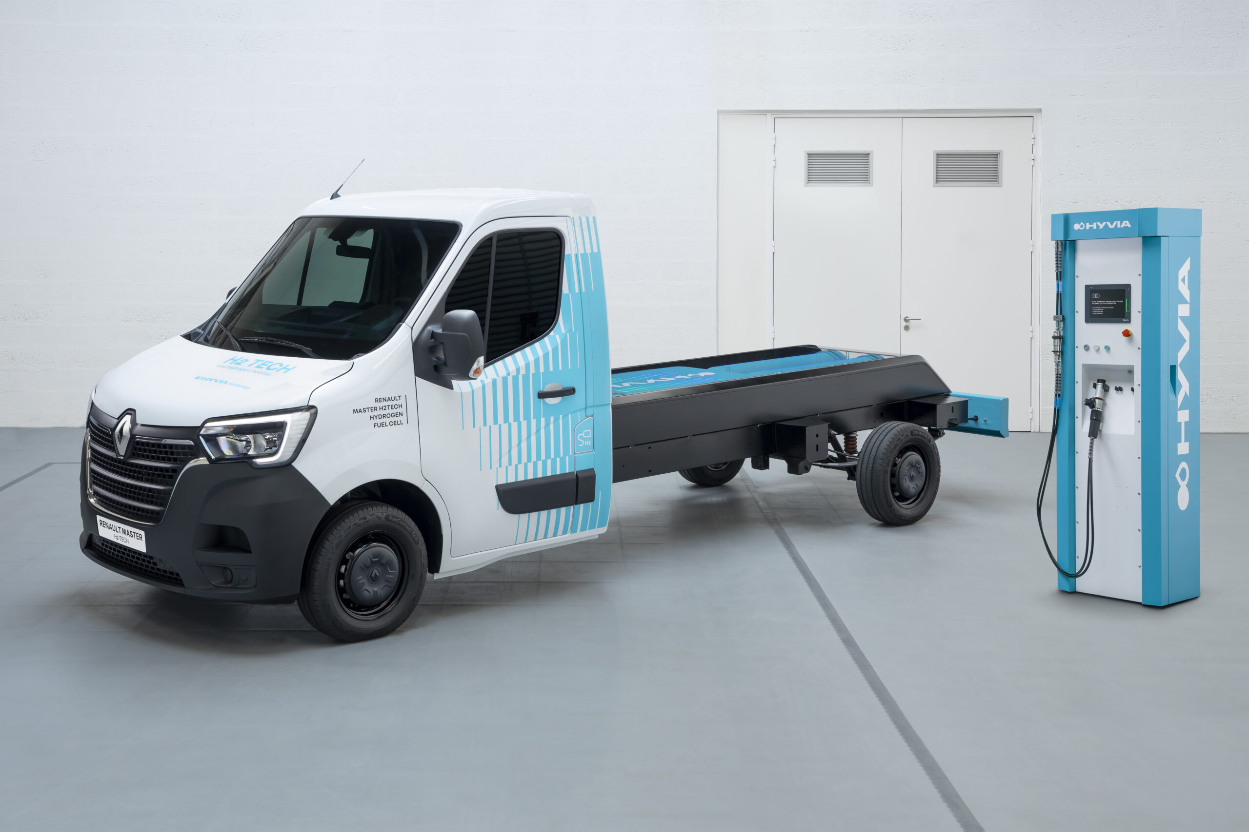 Por otra parte, HYVIA ofrece una cartera de tres vehículos comerciales ligeros impulsados por hidrógeno: una furgoneta, un chasis-cabina y un autobús urbano, con una autonomía de hasta 500 km, así como un ecosistema completo de estaciones de H2, producción de H2 y servicios asociados.