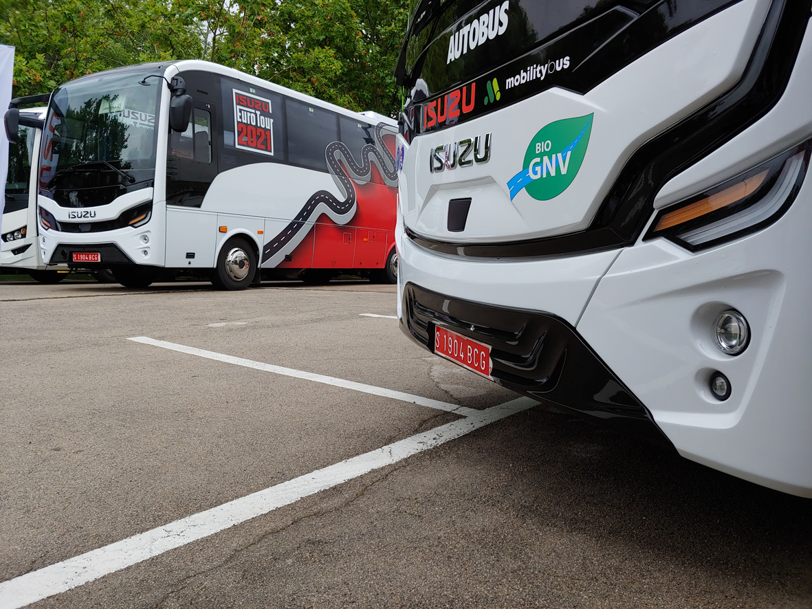 Ismael Gómez, responsable comercial de Isuzu Bus, fue el encargado de explicar los detalles de ambos vehículos. El Kendo GNC es un vehículo suburbano de 13 metros, especialmente concebido para el segmento de cercanías y de consorcio. Con capacidad para 63 butacas más 10 personas de pie, dispone de la tecnología más actual, porque ha sido terminado en su concepción recientemente, comentó Gómez, añadiendo que también admite toda la conectividad que existe en el mercado.
