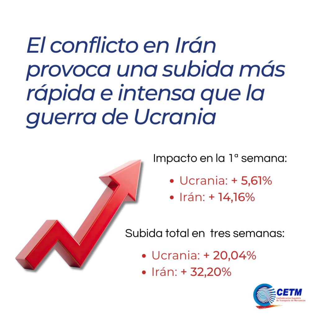 La Confederación Española de Transporte de Mercancías (CETM) ha advertido de que la actual escalada del precio del combustible derivada del conflicto con Irán es comparable —e incluso más intensa— que la registrada tras el inicio de la guerra de Ucrania en 2022, y ha urgido al Gobierno a aprobar medidas inmediatas de apoyo al sector.