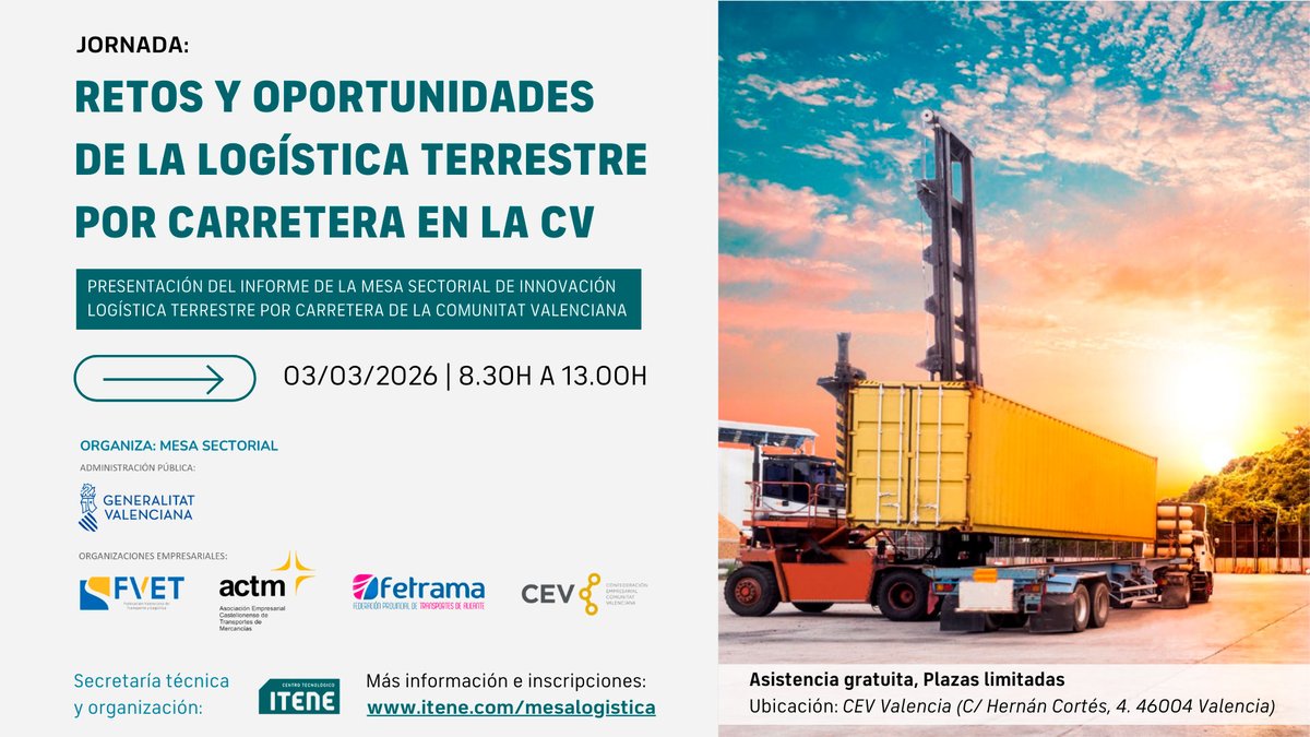 El informe ha sido elaborado por ITENE y ofrece una radiografía completa del impacto económico del transporte terrestre por carretera en la Comunidad Valenciana, además de identificar seis retos estratégicos para garantizar su competitividad futura. La presentación contará con la participación de las federaciones del transporte de la Comunidad y de la CEV en representación del tejido industrial.