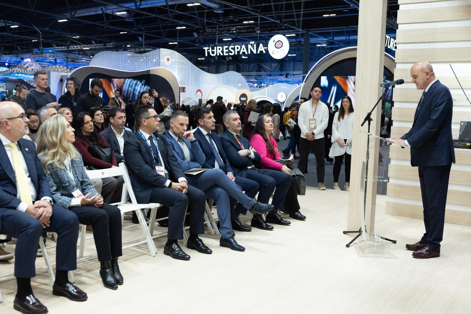 El acto, celebrado a las 10:45 horas en el estand de EIVISSA, contó con la presencia de Rafael Roig, presidente de la FEBT; Jaime Rodríguez, director de CONFEBUS; Emilio Díaz, presidente de la Asociación de Transporte Discrecional de Eivissa y Formentera; Vicente Marí, president del Consell d’Eivissa; Mariano Juan Colomar, conseller insular de Movilidad; y Roberto Algaba, director insular de Transportes.