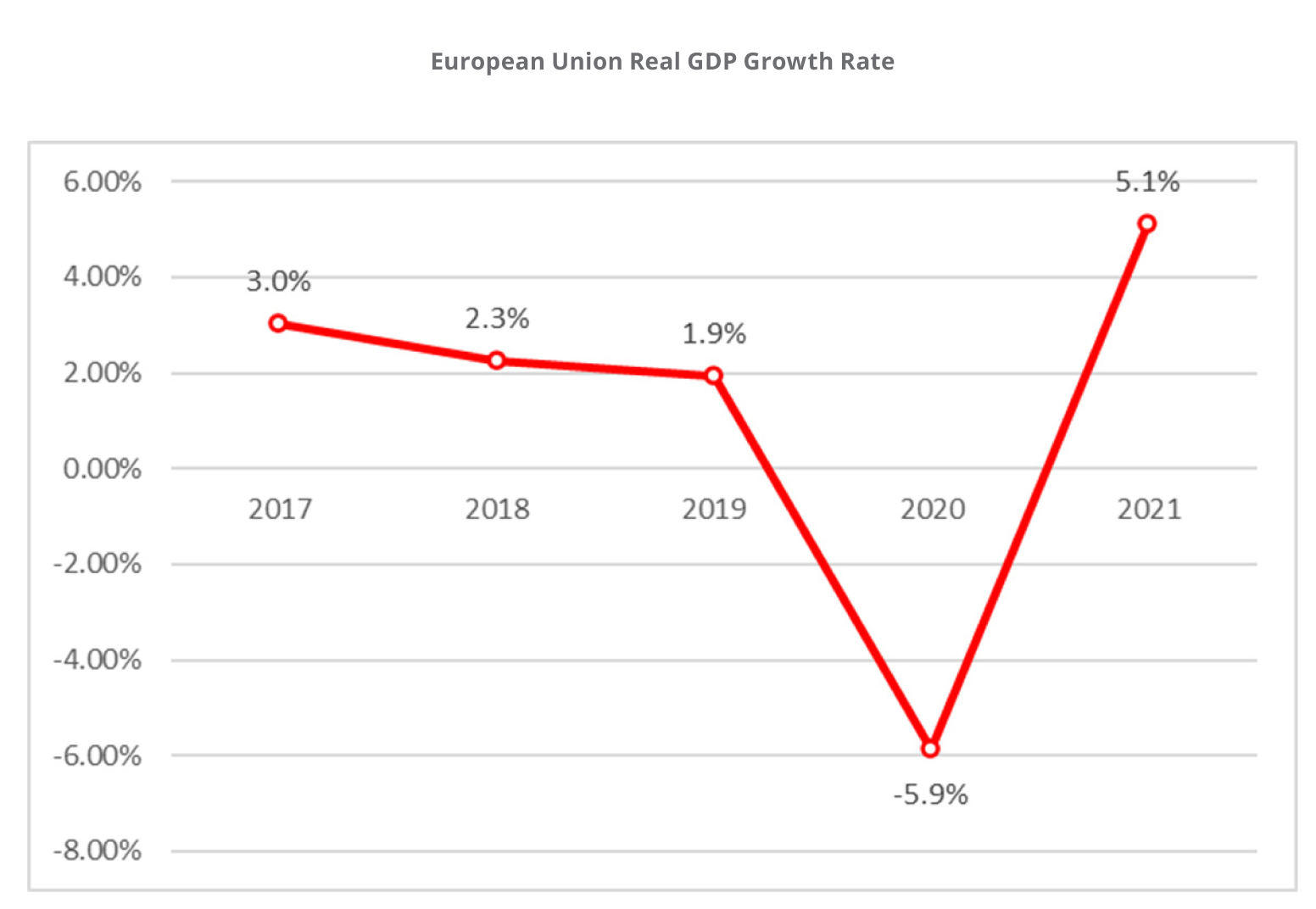 La economía europea en 2021 se ha acercado a una recuperación total desde los mínimos de la pandemia en 2020. El crecimiento del PIB en la Unión Europea fue del 5,1% en 2021. La recuperación parcial ha sido impulsada por un aumento del consumo a medida que los hogares reducen su tasa de ahorro, y la renta disponible reprimida se reintegra en la economía. Los planes de recuperación nacionales y europeos han consistido en una inversión considerable, que ha que ha impulsado la recuperación y el crecimiento. Además, el desempleo ha descendido a niveles similares a los de la prepandemia en 2021, lo que ha fomentado nuevos aumentos salariales y de gasto.