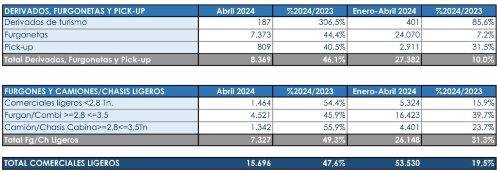 El acumulado de este subsegmento dentro de los Comerciales se sitúa un +15,3% por encima de lo registrado a estas alturas de 2023, cinco puntos por encima del dato de finales de abril.