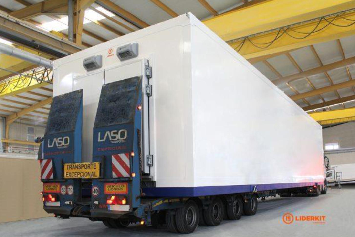 Esta particularidad también conlleva un transporte especial, ya que el volumen y dimensión del túnel de frío de Liderkit sobrepasa las medidas habituales de un camión articulado.