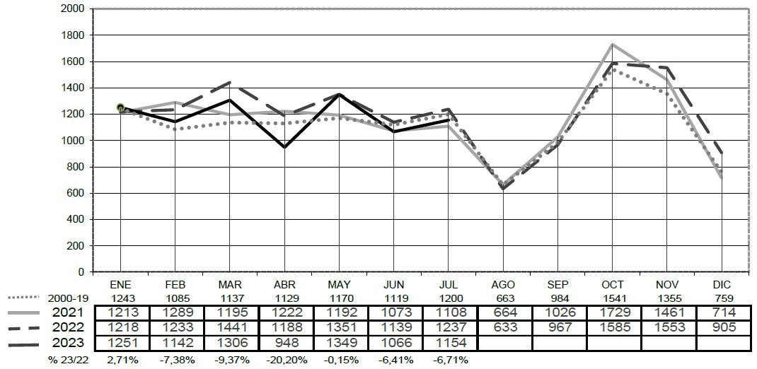 Entre los distintos segmentos, las lonas (+0,5%, con un total de 3.063 matriculaciones) y los furgones (+16,4%) son los únicos que mejoran respecto a 2022, mientras que a los tipos que peor les va son los basculantes (pierden un -21,4%) y los frigoríficos (2.214 unidades, cayendo un -16,5%).