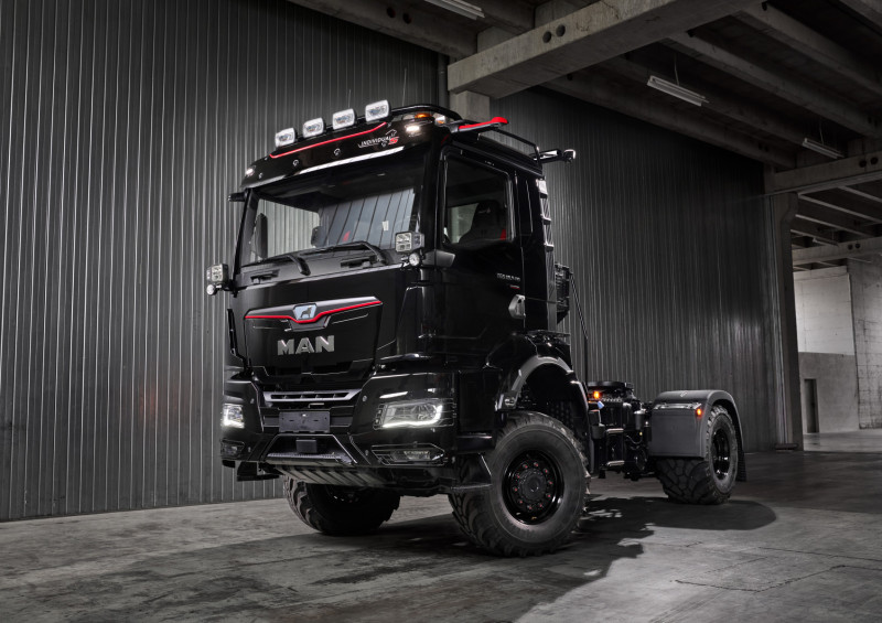 El diseño estético del vehículo ha sido desarrollado por los expertos de MAN Individual, aportando una identidad visual potente y un acabado que no pasa desapercibido, todo ello sin renunciar a su funcionalidad agrícola.