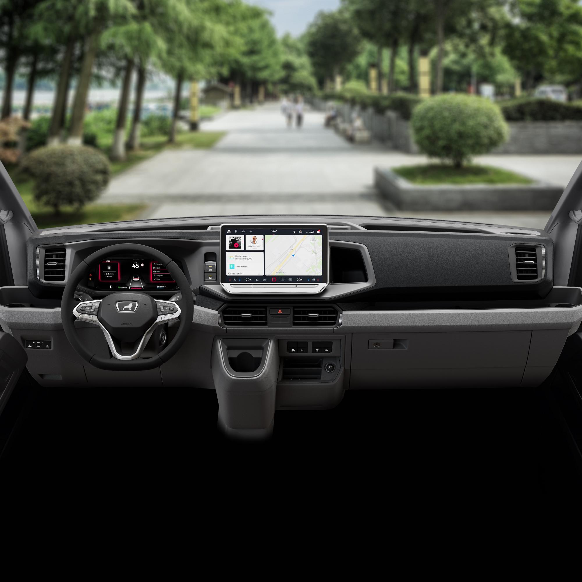 El sintonizador DAB, la interfaz Bluetooth y MAN SmartLink para la integración de smartphones (Android Auto o Apple CarPlay) están instalados de serie en el MAN Media Van, mientras que otras funciones son opcionales como la transmisión multimedia y el control por voz, la base de carga inductiva para la carga inalámbrica de dispositivos inteligentes, o el In-Car Communication para mejorar la comunicación con la segunda fila de asientos, mediante un micrófono delantero y altavoces traseros.