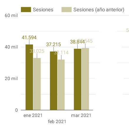 Según datos oficiales de Google Analytics, supera en los últimos tres meses la cifra de 428.300 páginas vistas, lo que supone un aumento del 11,88% en comparación el mismo periodo del año anterior, manteniéndose así la tendencia al alza que se registró durante todo el ejercicio 2020. La media mensual está por encima de las 142.000 páginas vistas. También crecen a doble dígito las visitas (117.000), con una tasa positiva del 12,39%, mientras que los usuarios (86.679 en el trimestre) lo hacen un 10,72%. Se consolida así una tendencia en la que, durante los últimos cuatro años, evolucionan de forma positiva los tres indicadores.