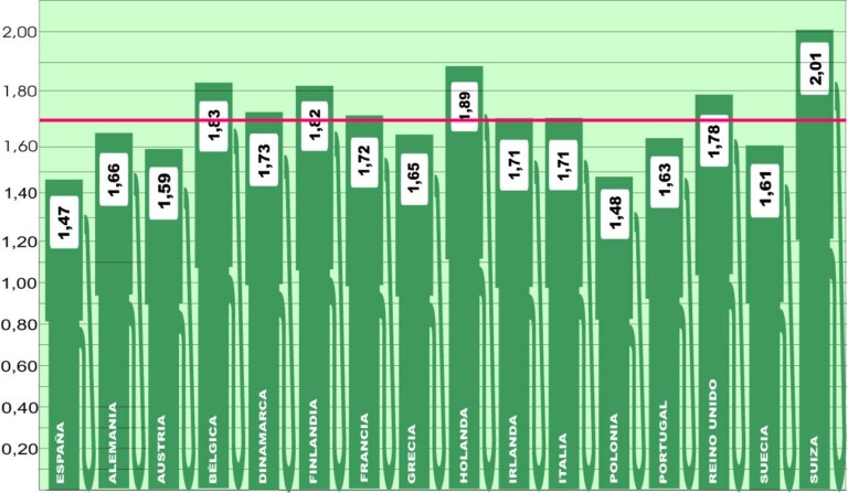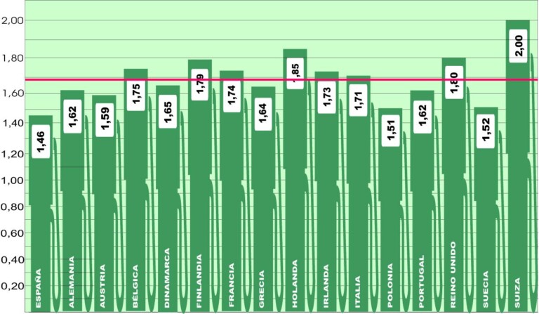 El precio medio conjunto del gasóleo A en la Unión Europea se reduce nuevamente esta semana 1,5 céntimos con respecto a la anterior, situándose en
