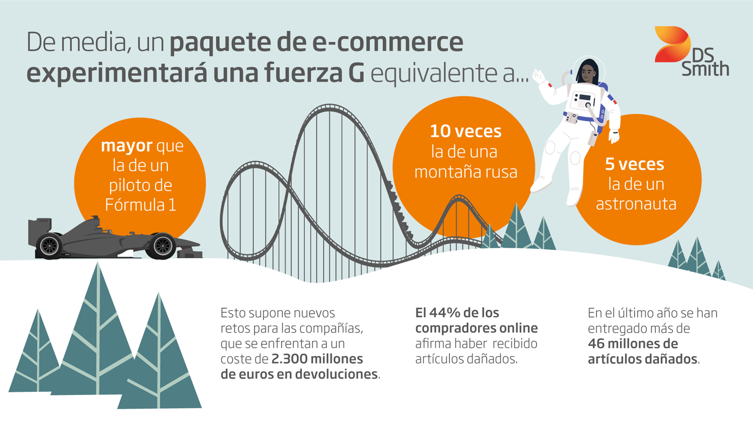 Gavin Mounce, E-commerce Design Manager en DS Smith, ha señalado que aunque es evidente que forma parte de la vida cotidiana, el e-commerce es todavía una forma relativamente nueva de comprar, y hemos comprobado a través de nuestra investigación que las condiciones a las que están expuestos los paquetes son volátiles. Tienen que estar preparados para viajar a velocidades asombrosas, y eso significa que las empresas tienen que estar preparadas para proteger los productos durante el trayecto.