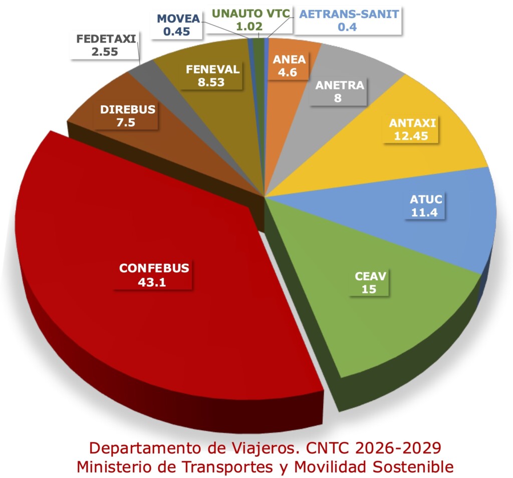 En cifras, Confebus cuenta con 43,1 votos de un total de 115, triplicando a la segunda organización con mayor peso en el Pleno. Además, dispone de la totalidad de los votos en la sección de Estaciones de Autobuses, del 69% en Transporte Público Interurbano de Viajeros en Autobús y del 24% en Transporte Público Urbano, reforzando su posición como referente indiscutible del sector.