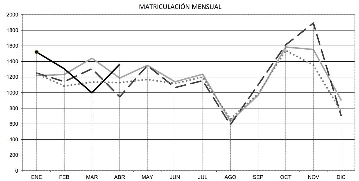 Esto supone que el acumulado anual se sitúa un +11,62% por encima del mismo periodo de 2023 al cierre del primer tercio (subiendo ocho puntos respecto a marzo), con un volumen total de 5.187 unidades.