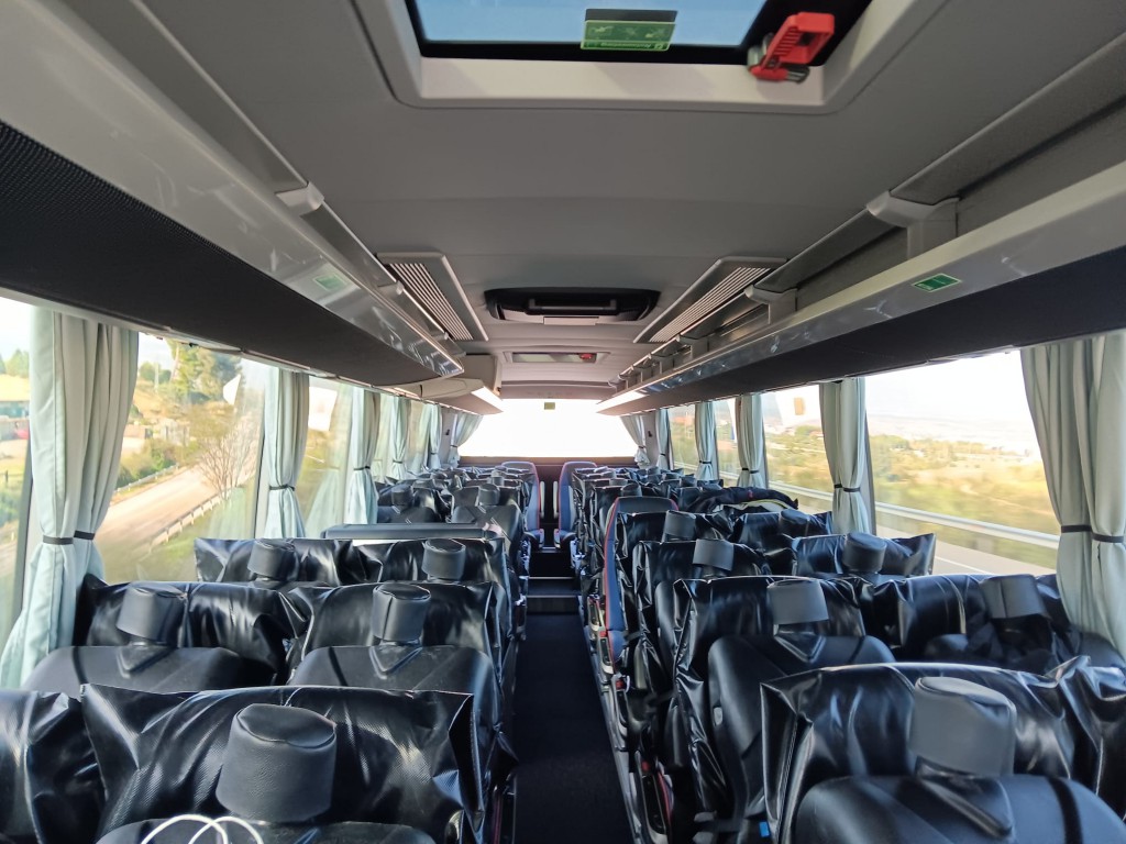 Muchos sistemas de seguridad y asistencia han tenido su estreno en un autocar Setra, desde el retardador hasta el sistema antibloqueo de frenos y el asistente de giro Sideguard Assist, por mencionar algunos ejemplos. El concepto integral de seguridad de Setra ayuda a prevenir activamente accidentes, protegiendo tanto a los pasajeros como al conductor e incluyendo a los usuarios más vulnerables de la vía. La nueva generación de autocares destaca por el alto estándar de seguridad y los novedosos sistemas de asistencia. La ruta ha sido realizada con la mayor parte de asientos ocupada por dummies; para darle un poco más de realismo a la prueba.