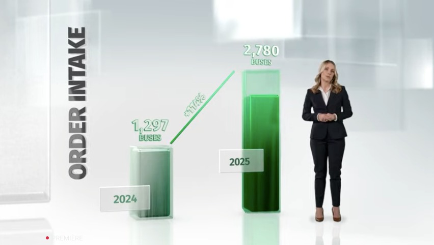 Los autobuses eléctricos de batería fueron el principal motor de entregas, con 916 unidades, a las que se sumaron 306 autobuses de hidrógeno, alcanzando cifras récord para ambas tecnologías en la historia de la compañía.