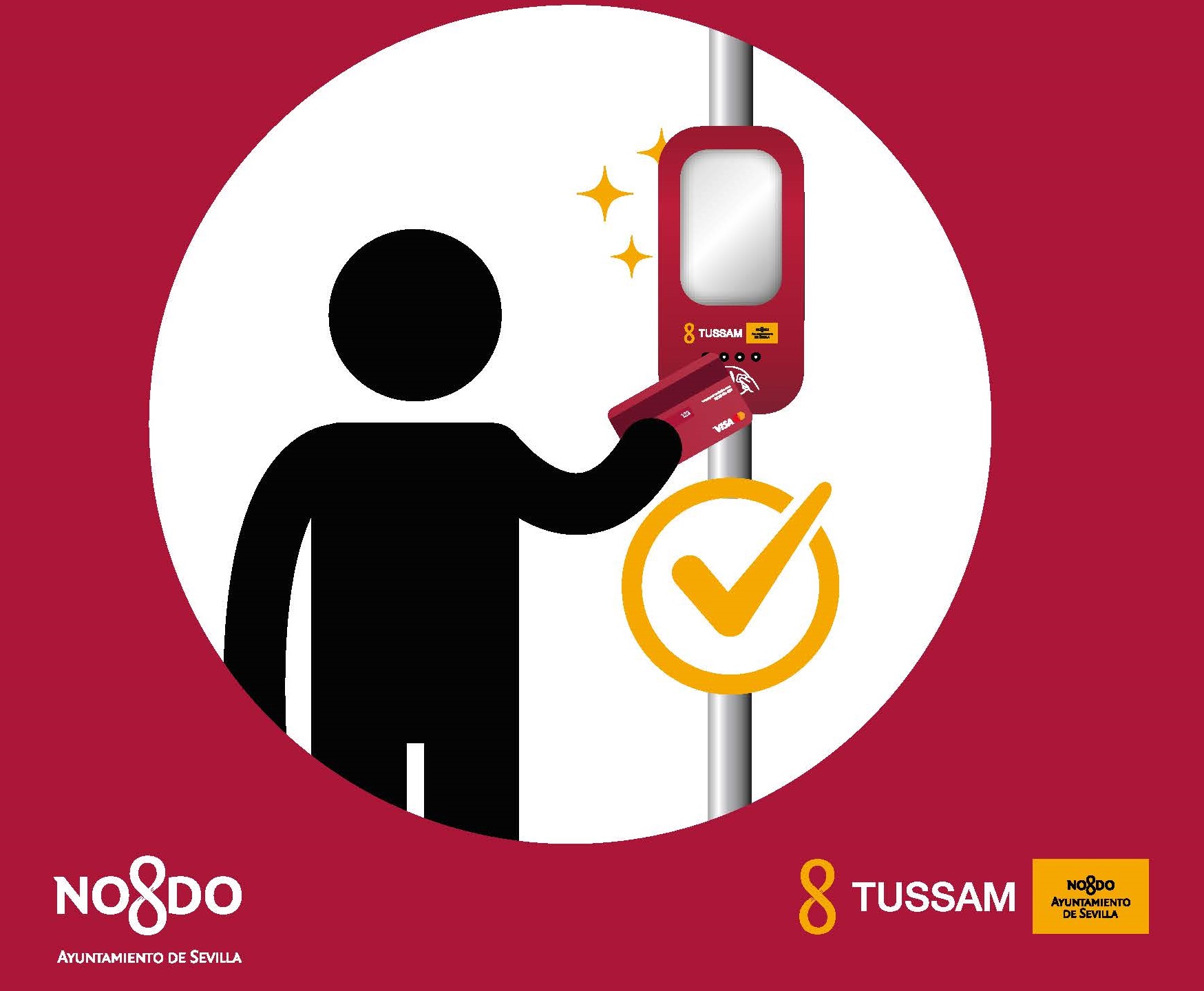 Proceden de las compañías Mastercard y VISA las tarjetas habilitadas, ya sean de crédito o de débito, siempre que sean contactless y se tenga habilitado el pago sin código PIN. Pagar el billete univiaje con tarjeta bancaria ahora es posible gracias al nuevo sistema implementado en nuestras validadoras. Simplemente acerca la tarjeta a la validadora de los autobuses de Tussam.