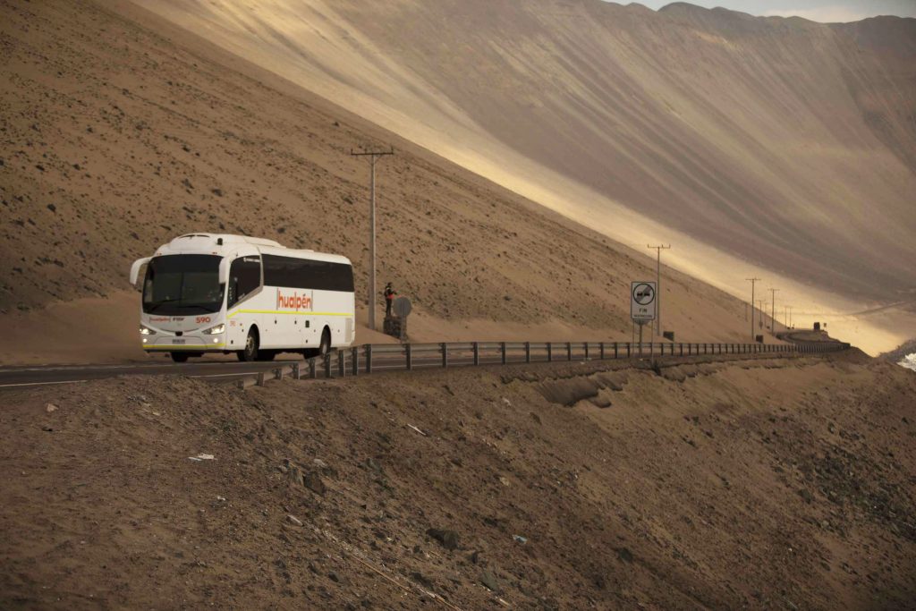 Los buses Irizar operados por Hualpén realizan sus servicios en toda la diversidad geográfica de Chile, desde Arica a Punta Arena.