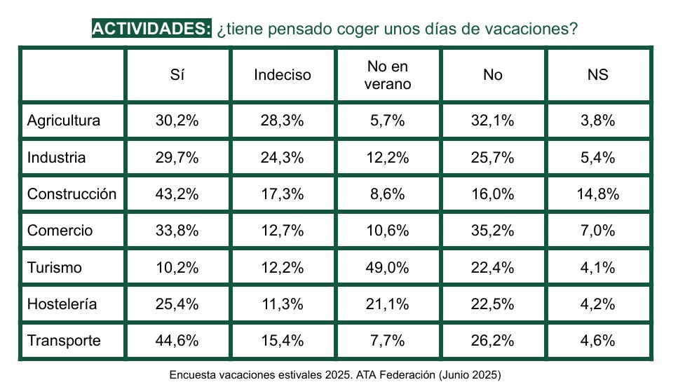 La dificultad para desconectar, la presión del negocio y la falta de recursos económicos impiden a muchos autónomos disfrutar del verano. Aunque el 43,7% afirma que sí se irá de vacaciones, más del 30% descarta hacerlo, especialmente quienes trabajan en turismo o en zonas rurales.
