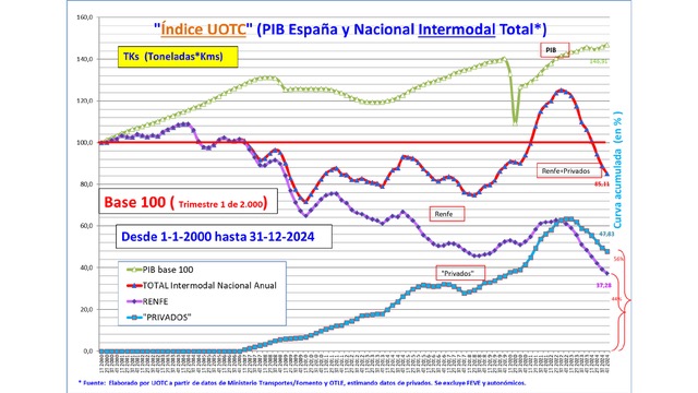 La situación es alarmante. En 2024, el volumen de mercancías transportadas por tren se desplomó hasta apenas un 85,11% del nivel registrado en el año 2000, según el Índice de Comodalidad de UOTC. ¿Las causas? Obras constantes en la infraestructura ferroviaria y aumentos tarifarios aprobados por el propio Ministerio. Pero para Antonio Pérez Millán, presidente de UOTC, el problema va más allá: «La evolución negativa de este índice evidencia la falta de una estrategia efectiva y coordinada para fomentar la comodalidad».