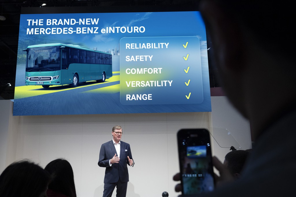 Daimler Buses celebró la presentación mundial del nuevo Mercedes-Benz eIntouro, el primer autobús interurbano de la marca impulsado por baterías eléctricas, durante la feria Busworld Europe 2025 en Bruselas. El modelo, que marca un nuevo hito en la hoja de ruta eléctrica del fabricante, ofrece una autonomía de hasta 500 kilómetros gracias a sus baterías de tecnología LFP (litio-ferrofosfato), y estará disponible en dos longitudes: 12,18 y 13,09 metros.
